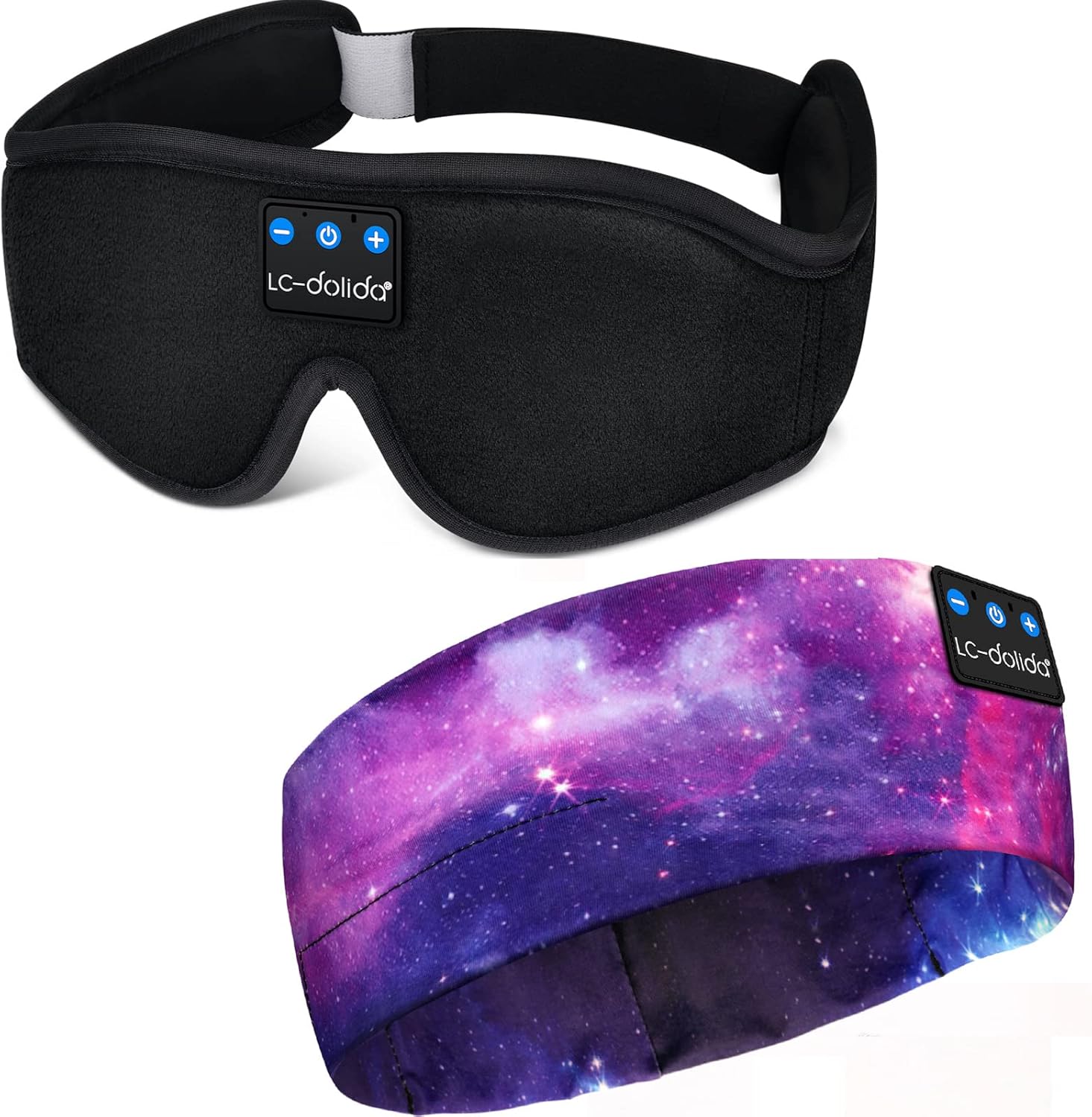 Image: The LC-dolida Sleep Mask with Bluetooth Headphones, featuring a black contoured design with integrated control panel.