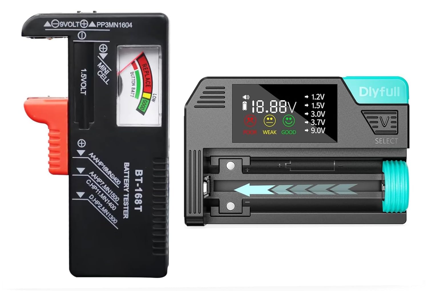 - Compatibilitate largă: Tests 1.5V AAA, AA, C, D alkaline batteries, 9V batteries, and various button-cell batteries.