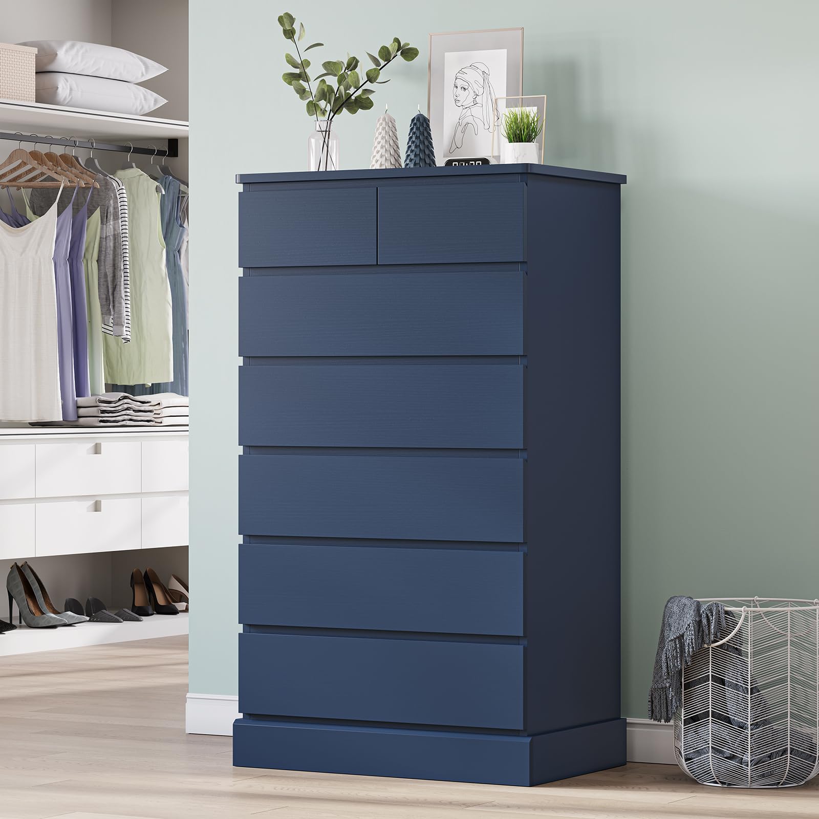 Figure 1: DICTAC 7-Drawer Tall Dresser, Navy Blue.